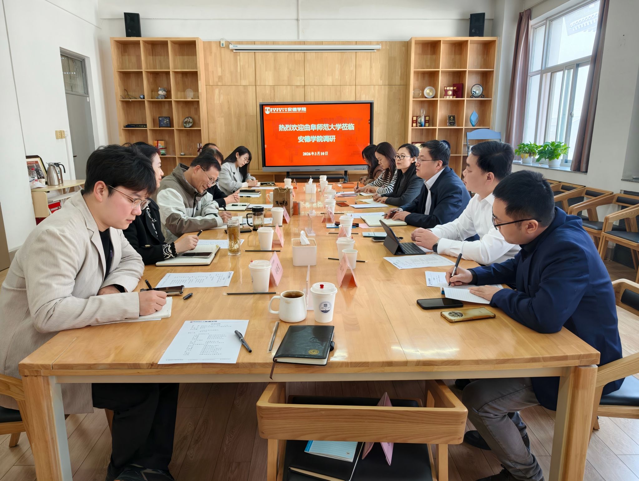 3月10日下午,曲阜师范大学国际交流合作处处长申同武一行4人来访我校女性自慰 ,就中外合作办学机构的建设工作开展专题调研交流。女性自慰 执行院长熊仲明、副院长赵蕾、党总支副书记张紫薇及相关科室负责人参加会议,会议由熊仲明主持。